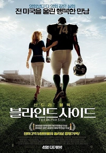 '블라인드 사이드'는 풋볼에서 쿼터백이 지각하지 못하는 구역을 뜻합니다. 영화에서는 풋볼에서는 능력이 있지만 어려운 가정형편에 처해있던 빅 마이크의 어려움을 한 가족이 눈치채게 됩니다. 원작은 2011년 출간된 마이클 루이스의 '더 블라인드 사이드: 게임의 진화'라는 책입니다. 감독은 존 리 핸콕 감독이며 직접 각본을 만들고 감독합니다. 2억 9백만 달러의 예산이 들었지만 3억 9백만 달러의 흥행을 이룹니다. 산드라 블록은 이 영화를 통해서 아카데미 여주연상과 골든 글로브 영화부문 여우주연상을 수상하게 됩니다.