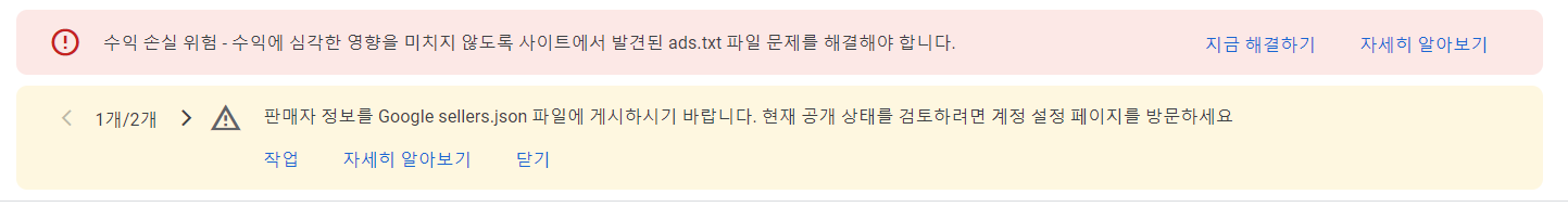 2. '지금 해결하기'를 누릅니다. 그러면 '사이트 1개에 사용할 ads.txt 파일 만들기'가 나옵니다. '다운로드'를 눌러 파일을 다운로드합니다.