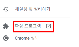 2. [설정]을 클릭하면 아래와 같은 화면이 나오고 매 아래에서 두번째인 [확장 프로그램]을 클릭합니다.